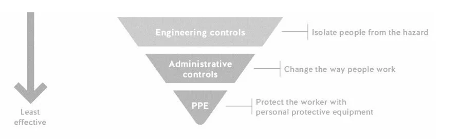 To reduce the risk of the virus spreading through droplets in the air, NES has implemented protocols to protect against the identified risks using the hierarchy of controls.